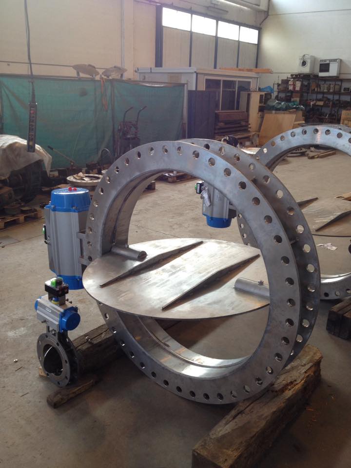 – Valvole a farfalla di non ritorno con cilindro, contrappeso e centralina oleodinamica